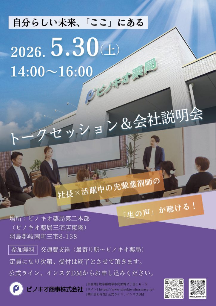 2026.5.30に薬学生向けの会社説明会を開催致します。
